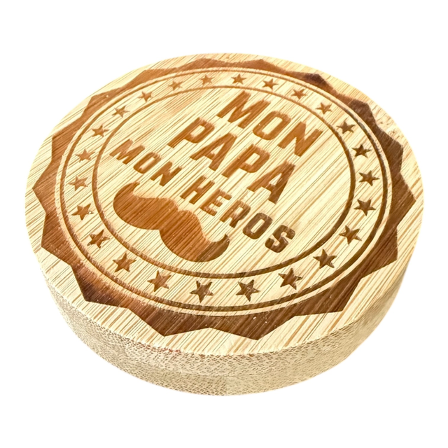 Décapsuleur en bambou gravé, doté d’un aimant au dos pour une fixation pratique sur surfaces métalliques.