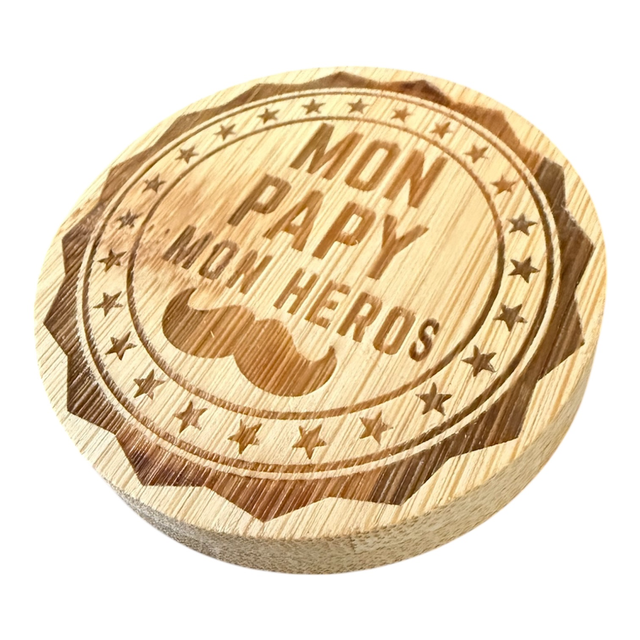 Décapsuleur en bambou gravé, doté d’un aimant au dos pour une fixation pratique sur surfaces métalliques.