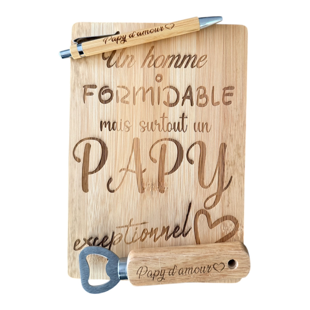 - 1 petite planche en bambou gravée – 22 × 15 cm